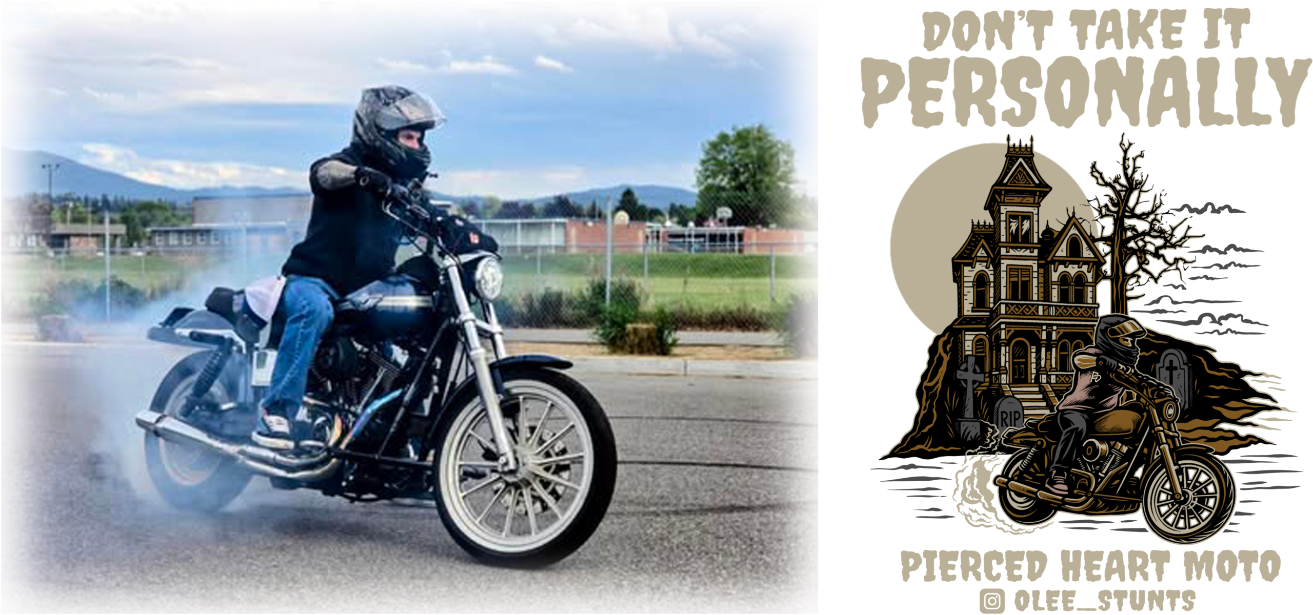 This shirt features a new Pierced Heart Moto logo on the front along with the artwork of Olee_Stunts actual riding picture on the back. This is the riders saying “Don’t take it personally” and as always also includes our signature “wear your heart on your sleeve” heart P logo!