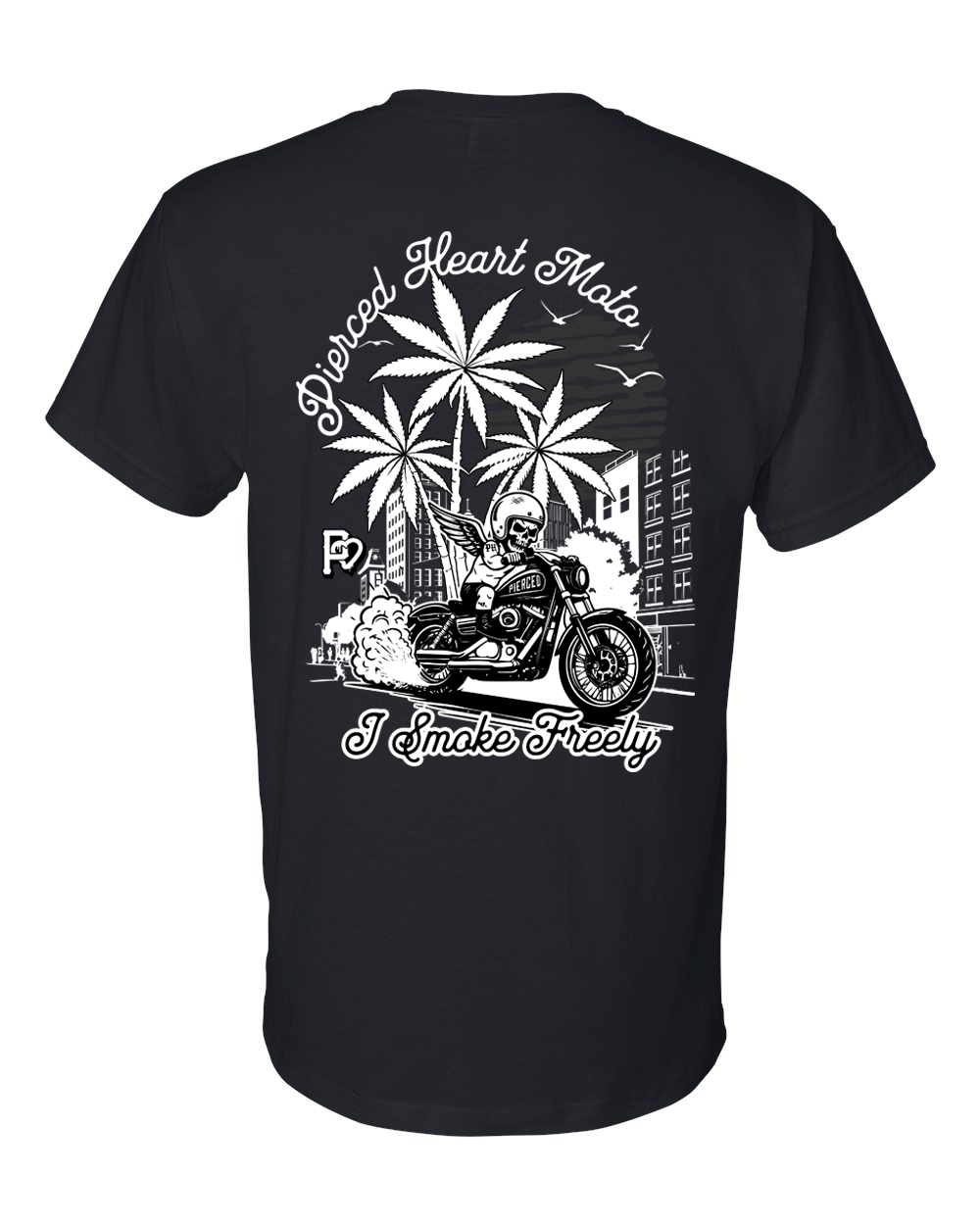 Also, this shirt features our P-Heart Weed Leaf logo on the front along with the Smoke Freely logo on the back. As always also includes our signature “wear your heart on your sleeve” heart P logo!