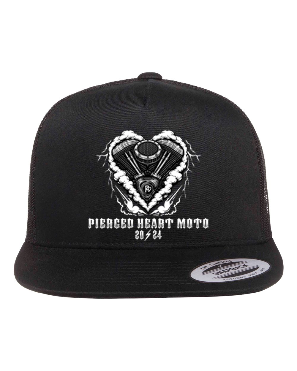 Snapback Pierced Heart Moto Trucker Hat – Motor Heart Logo. This is our hat with our new Motor Heart logo.